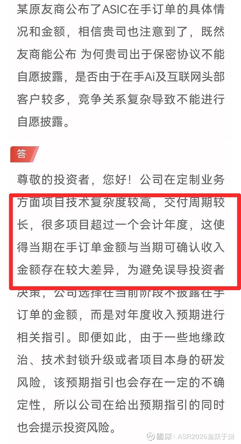 $翱捷科技-U(SH688220)$ 简单总结一下,5g芯片没问题,定制项目已重视,在扩招人员。3D平台正常推进。最重要的一点,其实在手订单已经有点披露了分析一波:今年收入确认大概十来亿,之前公告多次提到,相对于24年收入倍数级增长。这里说了,很多订单周期超一年,订单金额和能确认的收入差别较大,所以推测订单金额至少有小几十亿,肯定比灿芯多,灿芯才九亿多。另外x原这两天跌,说是有人士透露X原明年一季度收入大概十亿,全年不超45亿,与之前预期差别较大