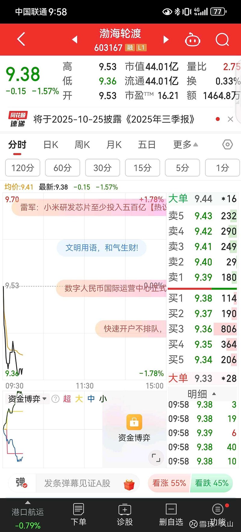 $渤海轮渡(SH603167)$