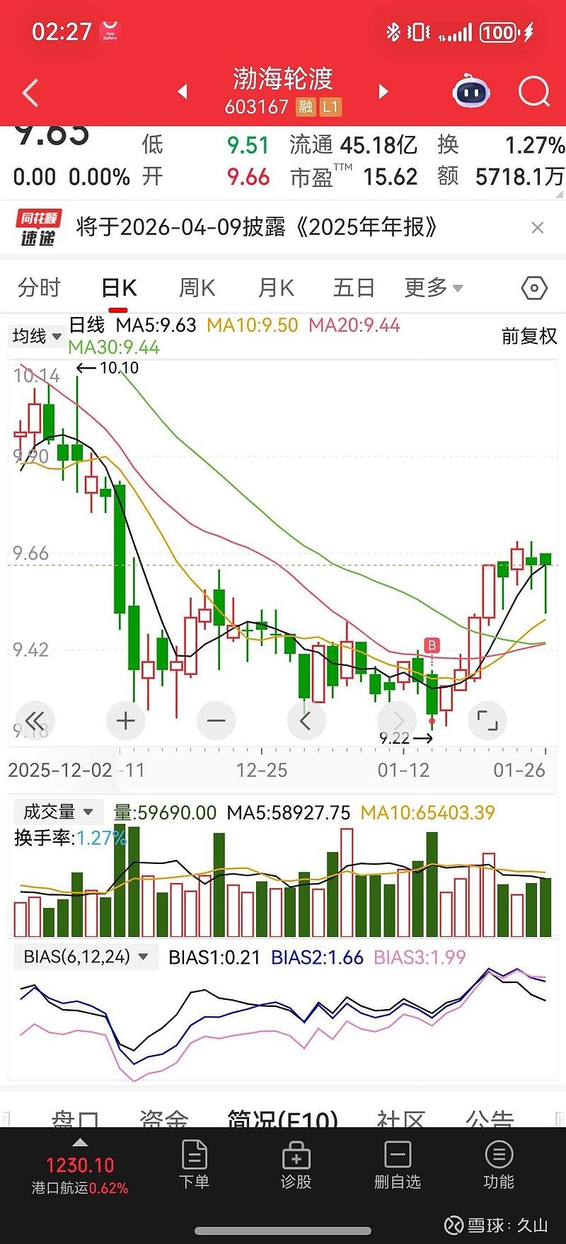 $渤海轮渡(SH603167)$
