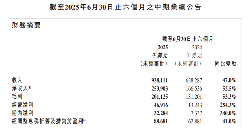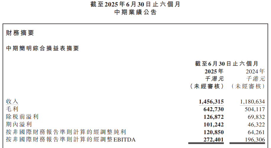 截至2025年6月30日止六个月,公司的收入同比增长12.3%至人民币18亿元,归属母公司权益持有人净利润同比增长30.8%至人民币3.97亿元,经调整归属母公司权益持有人净利润同比增长71.3%至人民币4.67亿元。董事会建议就截至2025年6月30日止六个月自公司股份溢价账以现金派付每股普通股0.045港元的中期股息。