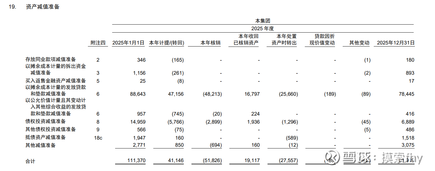 12、信用减值损失计提为404.07亿元,占营收的比例为30.86%,2024年为494.28亿,同比计提下降90.21亿元,贷款减值计提464.11亿元,比2024年的529.24亿元也是降低了65.13亿,贷款减值准备为788.61亿元,比2024年的896亿元减少了107.39亿元,平安银行连着2年贷款减值准备余额减少百亿以上,就是说就是说2025年计提的近464.11亿元减值损失全部消耗掉,又把过去积累的贷款减值准备消耗掉100亿元以上,另外消耗了债权投资计提的减值准备80.7亿元,才维持现在的资产质量各项指标,才做出了业绩增速负增长-4.4%的数字。