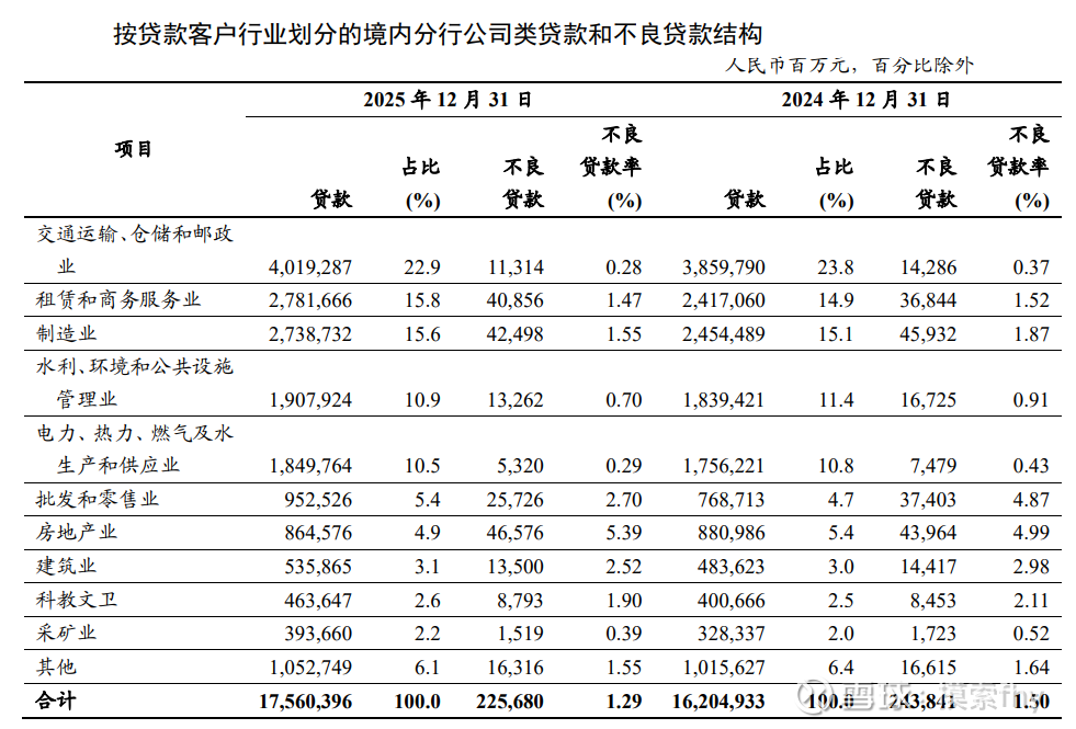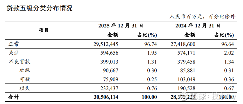 其他正常类贷款迁徙率为0.97%,比2024年的1.09%下降0.12个百分点,新生不良率为0.42%比2024年的0.34%提高了0.08个百分点。