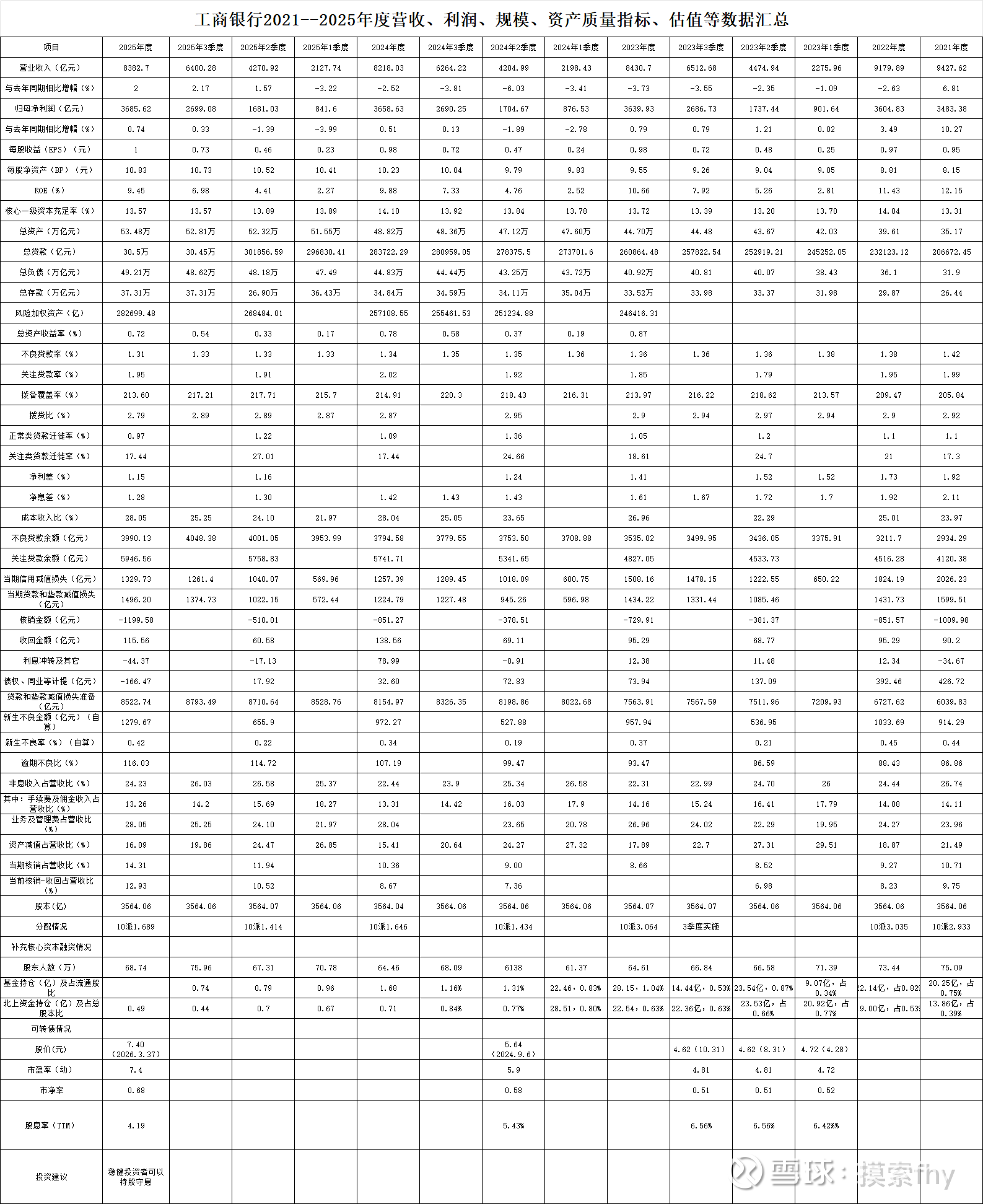 2、工商银行2025年营收增长2.00%,净利润增长0.74%,各项规模增速7-9.5%左右,与全国平均水平接近,它可以说就是全国银行业的映射。
