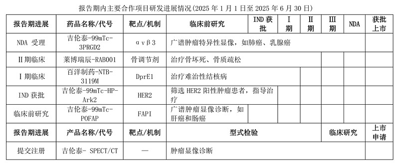 1类放射性诊断药物靶向HER2的99mTC-HP-Ark2分子探针,即将开展Ⅰ期临床研究,用于筛选HER2阳性肿瘤患者,指导治疗;靶向FAPI的99mTc POFAP,用于广谱肿瘤显像诊断,如肝癌和肠癌,目前尚处于临床前研究阶段。