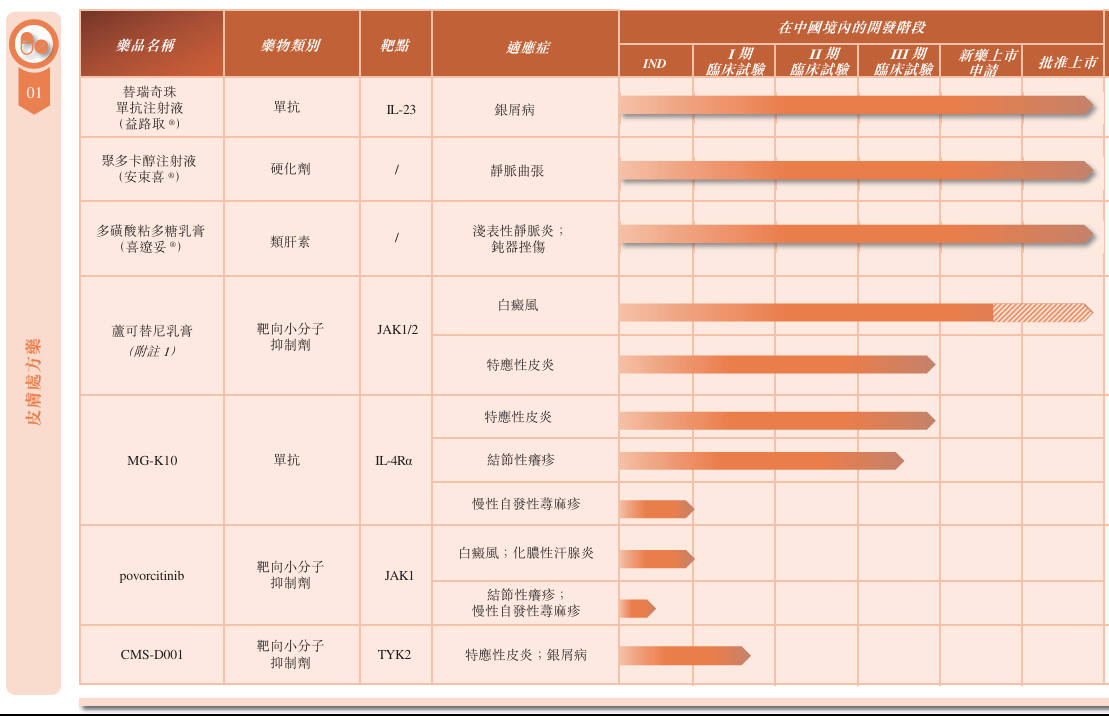 康哲药业通过附属公司德镁医药从Incyte引进的芦可替尼乳膏,同样颇具看点。