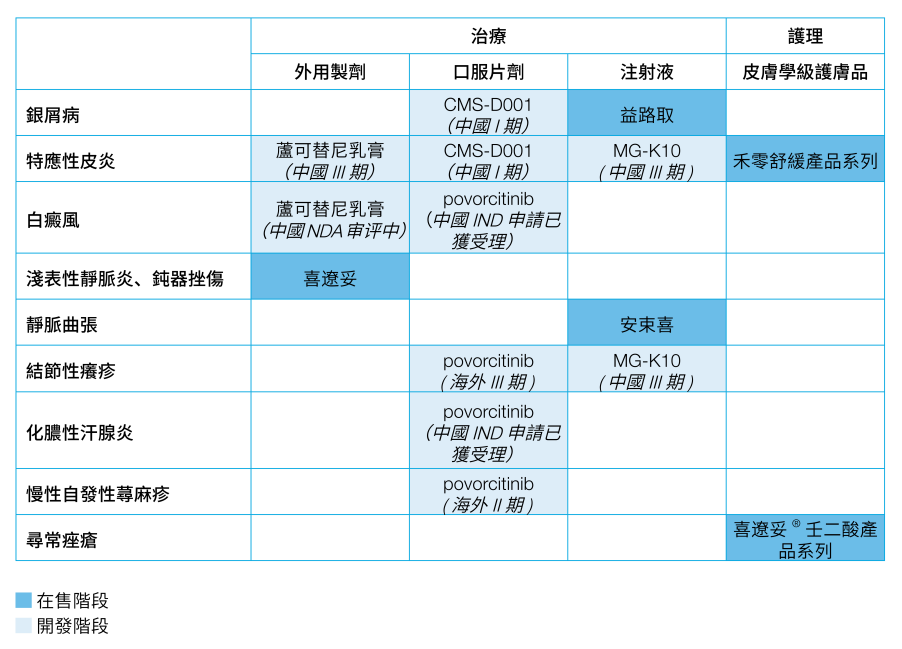正因如此,德镁医药打造了全面、差异化皮肤健康产品组合。在中国创新药企业中,德镁产品覆盖的皮肤疾病适应症和数量,以及皮肤处方药产生的收入均排名第一。