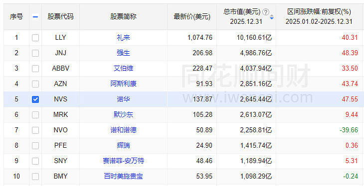 2025年已收官,全球制药巨头成就颇丰:礼来成为全球首家市值突破万亿美元的药企、艾伯维以绝杀之势引进泽璟制药DLL3/DLL3/CD3三抗ZG006(Alveltamig)、诺华股价全年累计涨幅达47.55%……