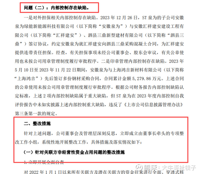 ② 内部控制存在缺陷 。
