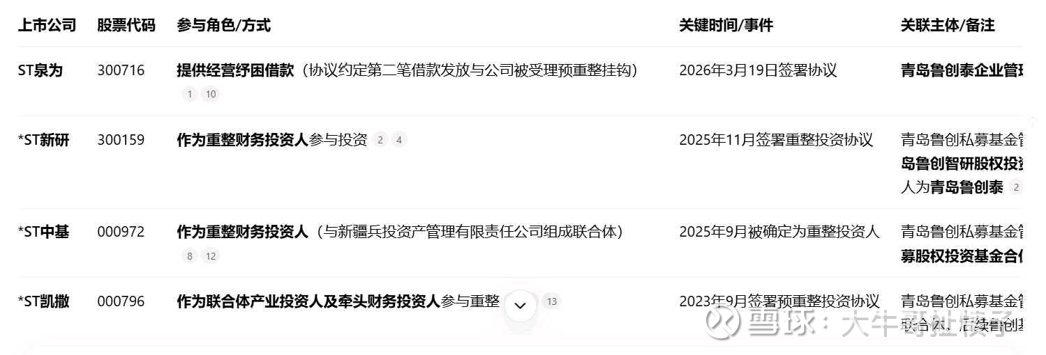 2025年鲁创 参与了 新研,中基,凯撒重整,