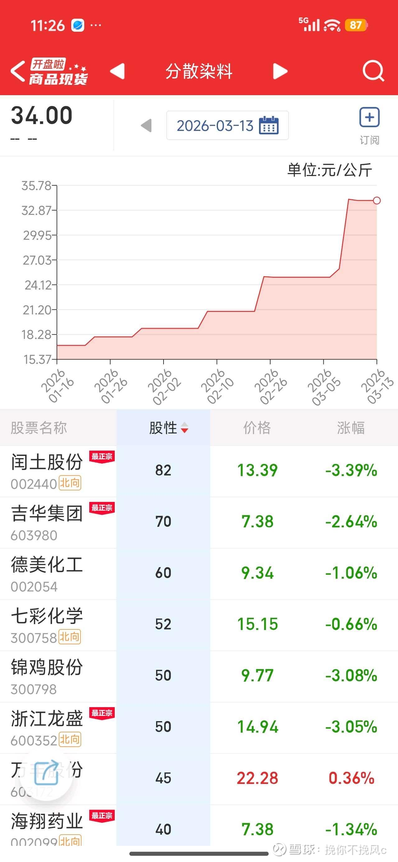- 中间体价格飙升:作为分散染料核心原料的还原物,价格从2025年底的2.5万元/吨飙升至2026年3月的10万元/吨,涨幅近300%,占分散染料总成本的20%-30%。