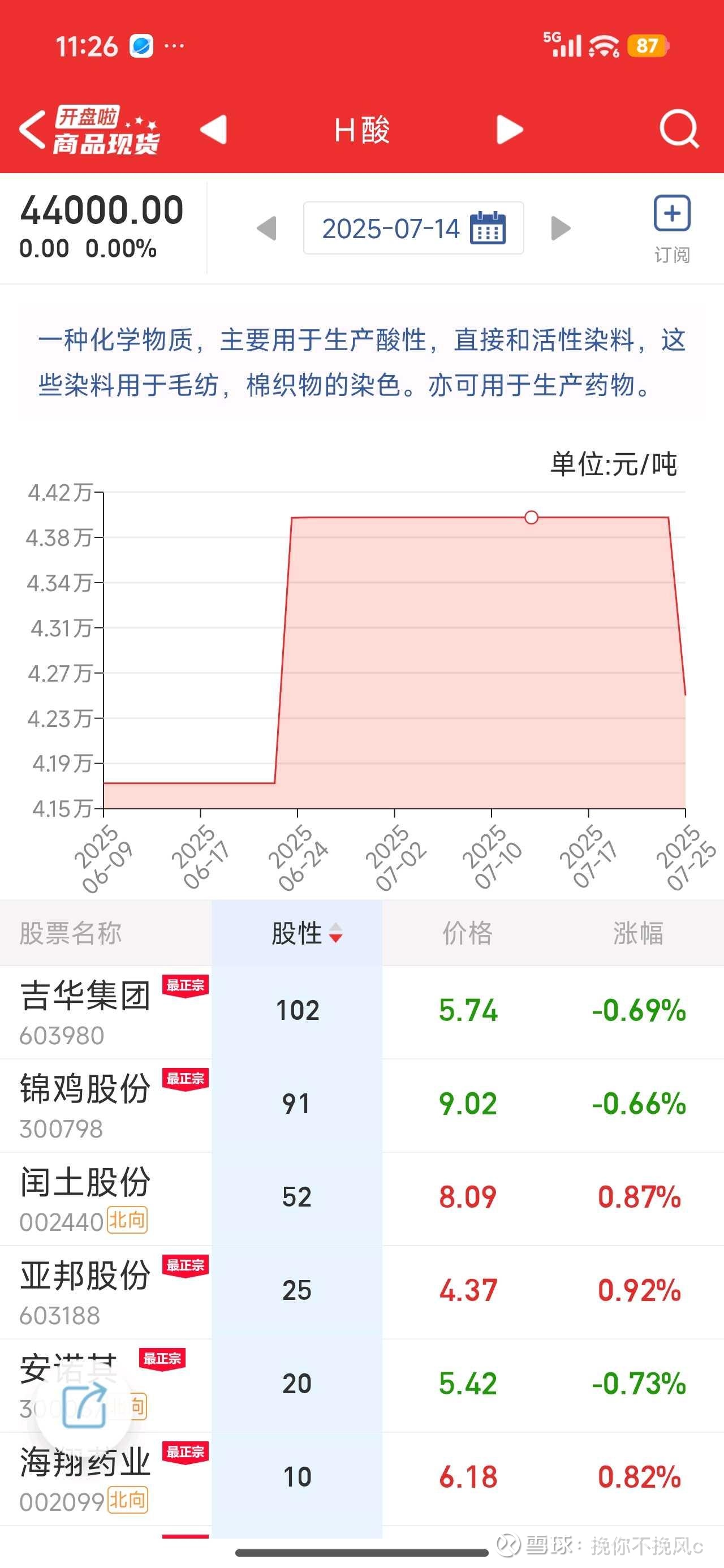 - 吉华集团:拥有分散染料产能7.5万吨,活性染料产能2万吨,配备活性染料关键中间体H酸产能2万吨。