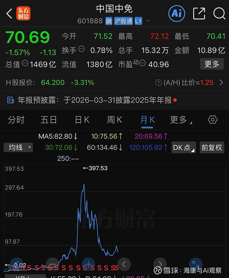 2020-2021年是中免的黄金期,核心逻辑是“政策垄断+高增长预期”。当时海南离岛免税独家经营权几乎被其垄断,2021年营收675.4亿元,同比增长24.1%,归母净利润67.1亿元,同比增长58.5%,毛利率达38.3%。机构给的估值是“永续高增长”,PE一度突破80倍,市值逼近2000亿元,被称为“免税茅”。