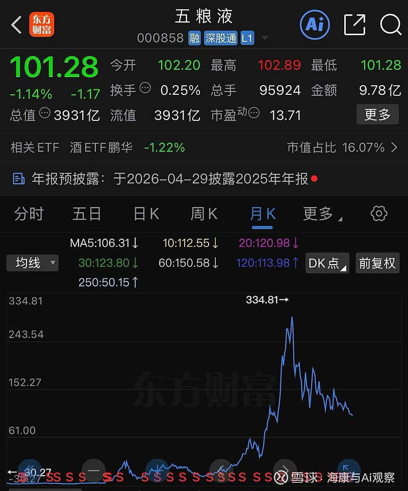 3. 估值杀:PE从60倍以上跌至2025年12月的12倍,股价从354.61元跌至105元,跌幅超74%,市值蒸发超4000亿元。当前PE约13.8倍,处于近十年2%-5%的历史分位。