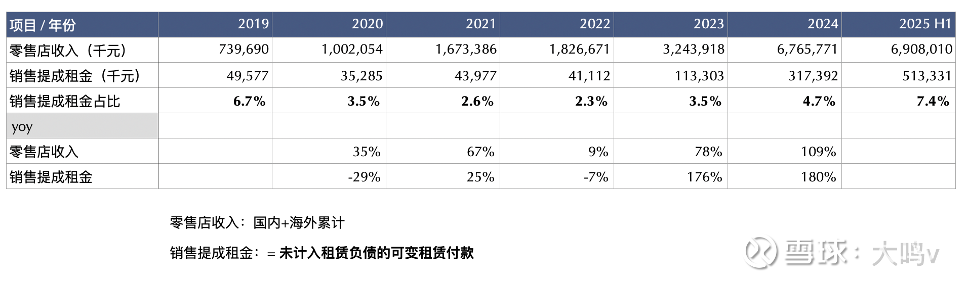 下图中有一个销售提成租金占比,分子为未计算租赁负债的可变租赁付款,分母是线下零售店收入,包括国内和海外。
