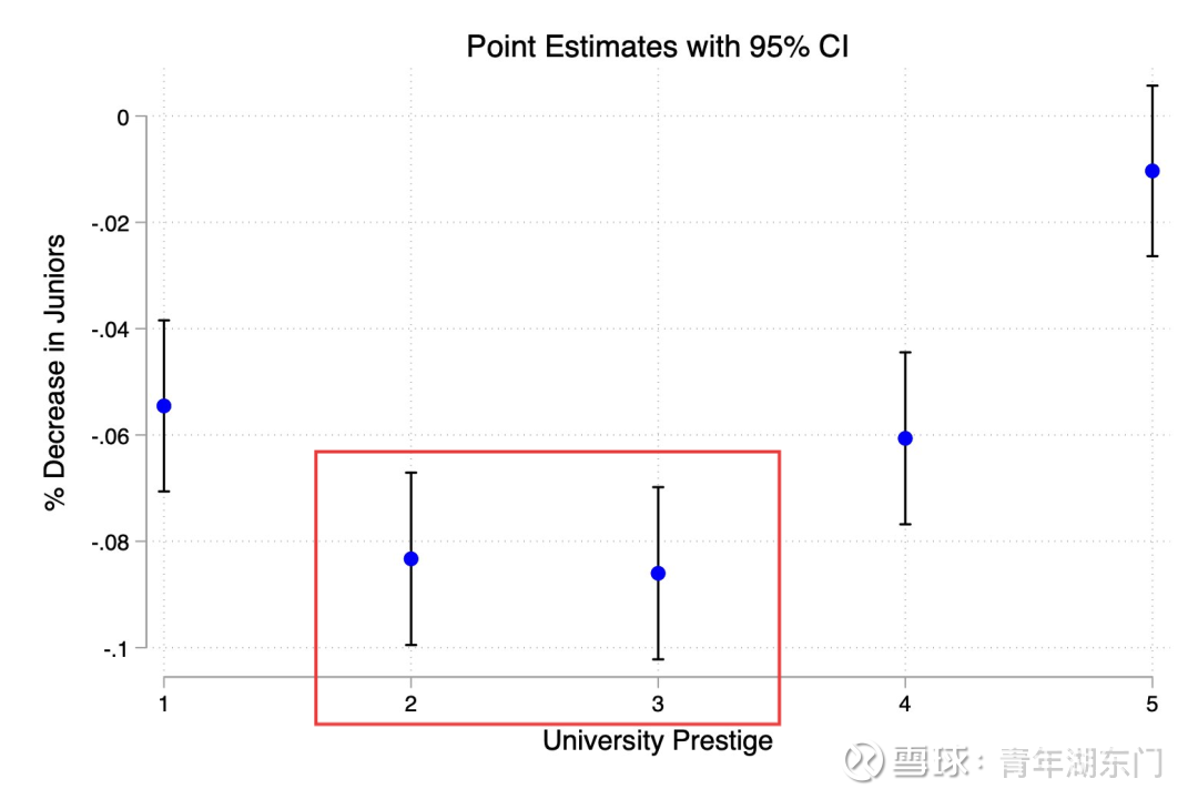 顶尖名校毕业生(Tier 1)受影响有限,他们的复杂问题解决能力让AI难以替代,而