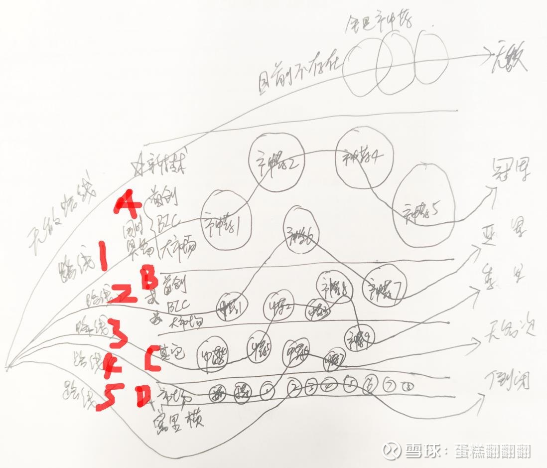 由于AB两条路的神药数量较多,因此选择1、2路线最后成长为巨头的概率较大。