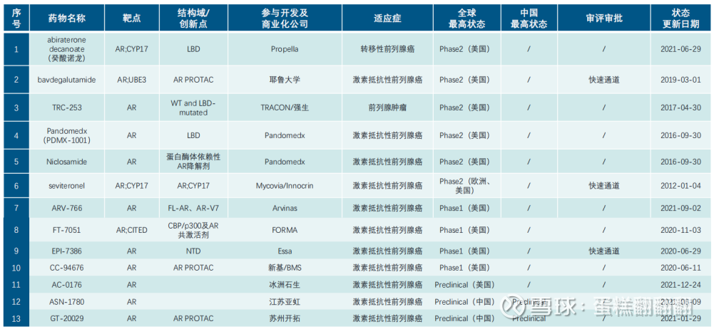 AR拮抗剂:同一靶点的药王恩扎卢胺都上市13年了,竟然还有27个药物在研发,不仅内卷而且没什么突破。