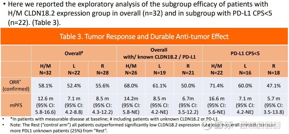 无论是三联化疗还是联合化疗,都证明了001对中表达的有效性和佐妥昔单抗的无效,甚至可能001对低表达也有明显获益。