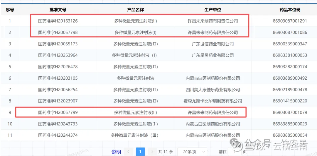 3)、多种微量元素注射液,简称“多微”,为第二代产品,含有10种微量元素,配方更优化,更好保护脏器、降低风险、促进疾病痊愈,更符合实际诊疗需求,便于临床实际的应用,但仅适用于成人; 市场上只有卫信康在售,已经进入医保,部分参与集采。