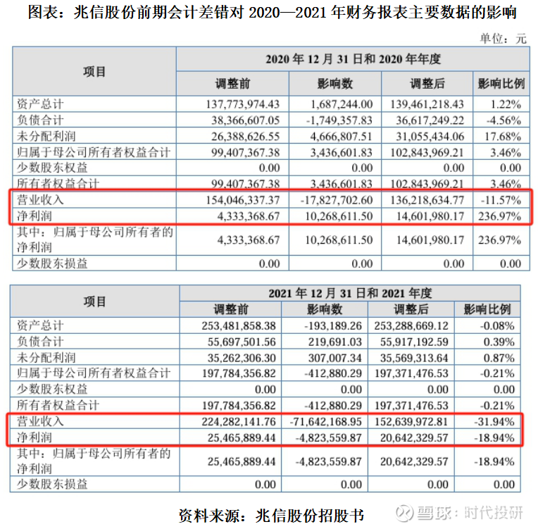 值得一提的是,2023年4月19日,兆信股份因前期会计差错对2020—2021年财务数据进行追溯调整,其中,2020年营收调减11.57%,净利润调增236.97%;2021年营业收入调减31.94%;净利润调减18.94%。