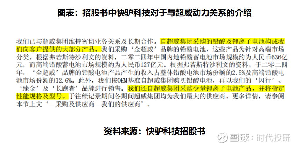 第二重隐忧则来自快驴科技对单一供应商的依赖风险。报告期内(2022—2024年),快驴科技99%的收入绑定铅酸电池销售,而2024年其99.2%的铅酸电池由独家供应商超威动力控股有限公司(下称“超威动力”或“超威集团”)(00951.HK)及其子公司供应。