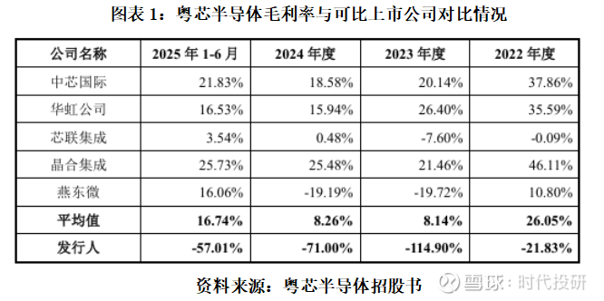 与同行相比,报告期内粤芯半导体的毛利率更是远低于同行均值的26.05%、8.14%、8.26%、16.74%。