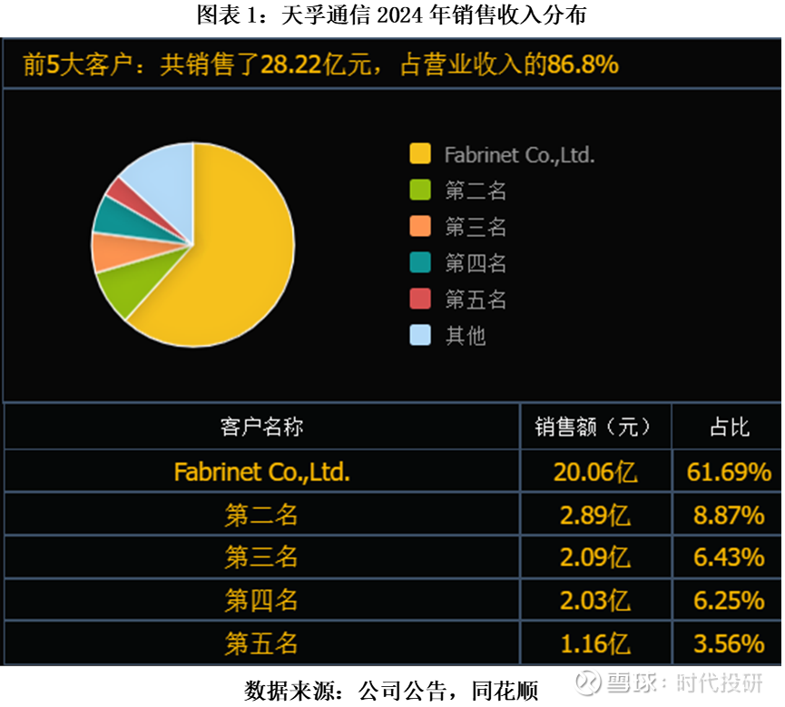 首先,是极高的客户集中度风险。该公司长期高度依赖单一大客户Fabrinet,2024年,Fabrinet销售额占比高达61.69%,这使得公司业绩与其命运深度捆绑。