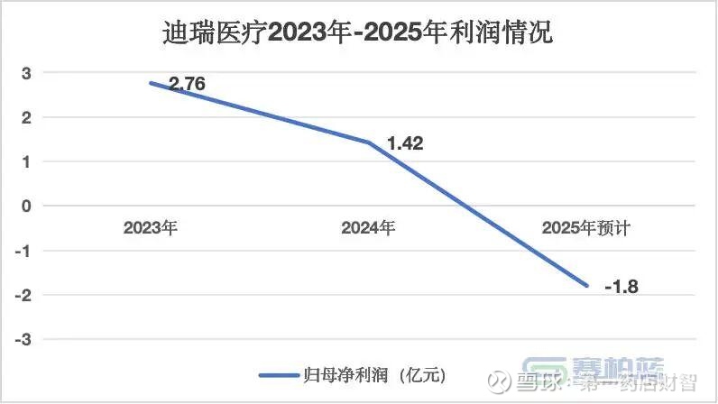 迪瑞医疗2020年被华润收购,是华润系旗下唯一医疗器械平台。2023年和2024年迪瑞医疗归母净利润已出现下滑趋势,2025年出现首次亏损,预计归母净利润为-1.8亿元到-3.5亿元(图按最低亏损情况制作)。