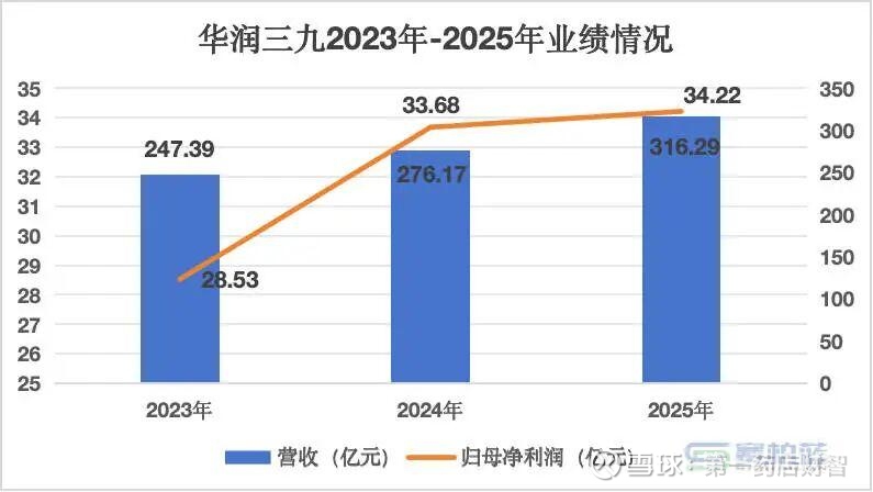 2025年,华润三九延续了稳健增长态势,营收达316.29亿元,同比增长14.53%;归母净利润34.22亿元,同比增长1.6%。虽今年利润增速有所放缓,但营收突破了300亿元大关。