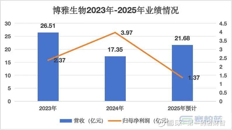 博雅生物2021年正式成为华润系旗下的血液制品平台,其2025年业绩预告呈现出“增收不增利”特征。预计营收达19.08亿元-21.68亿元,同比增长10%-25%;归母净利润降至1.05亿元-1.37亿元,同比降幅达65.62%-73.55%(图按2025年预计最高营收和归母净利润制作)。