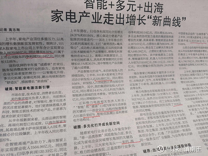 任何行业的发展,最终趋势,都是头部龙头企业垄断大部分利润,家电行业,101家上市企业2025年上半年净利润700亿,美的和格力二者净利润就是400亿,就占了57%,龙头企业发展到最后,品牌、口碑,渠道都是核心的竞争力!$美的集团(SZ000333)$ $格力电器(SZ000651)$ $海尔智家(SH600690)$