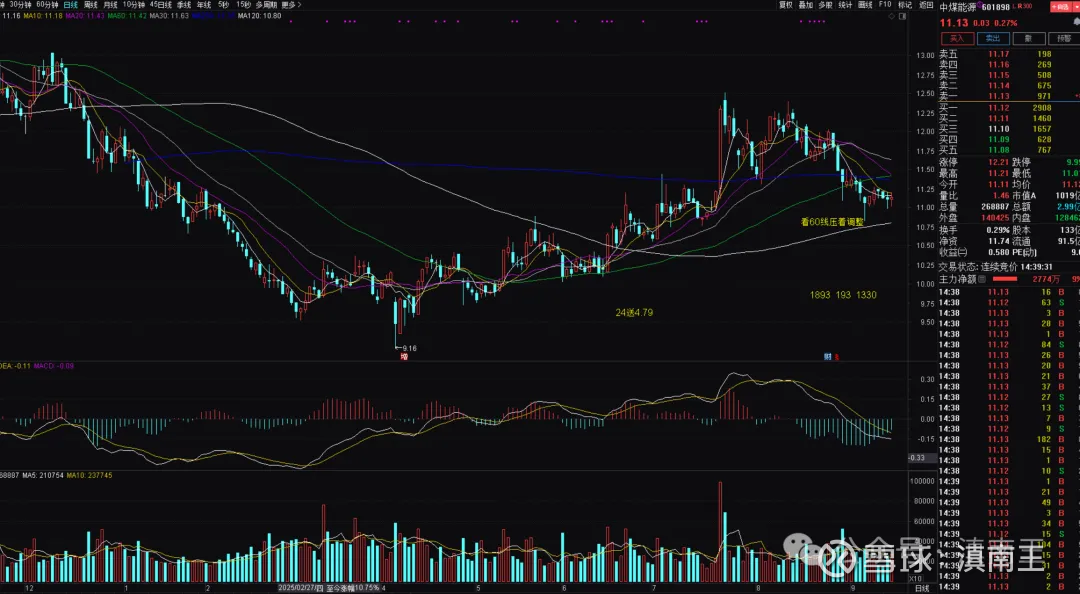 周二(9月9日)从中国电影撤退后,果断的11.17元埋伏了中煤能源!一年多的研究跟踪,到埋伏,终于修成正果,也是整个初步研究到此结束,剩下的就是按照体系去应对就行!