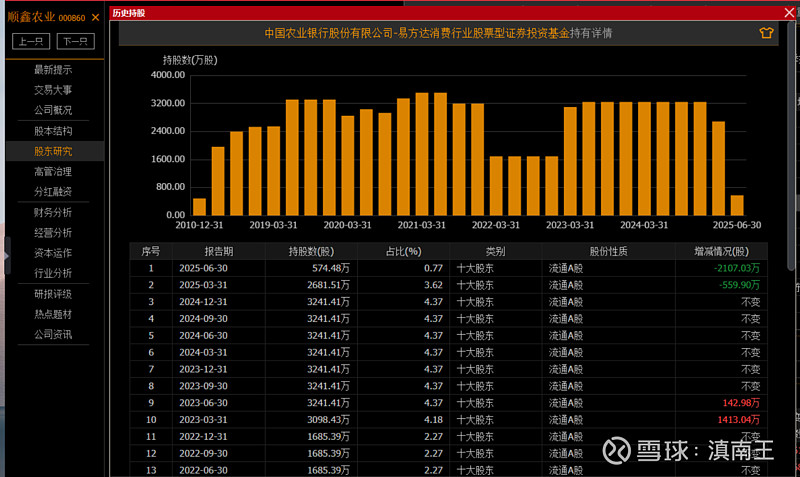 今晚复盘了一下易方达消费投资基金投资顺鑫农业的例子,真的很可惜,易方达最高持有顺鑫农业80多元没减持,最终调整到30减持一半,然后又加仓到高位,现在又在15附近清仓式减仓,易方达作为白酒最大的投资机构,如果易方达走了,这真的说明白酒真的是无人问津,但是按照以往规律,机构大幅撤退,往往就是行业底部!机构其实和散户一样,往往也是喜欢追涨杀跌!$顺鑫农业(SZ000860)$ $贵州茅台(SH600519)$ $五粮液(SZ000858)$