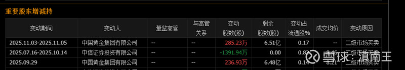中国黄金,大股东开始增持了,其实作为一家央企,账面上有那么多现金储备,股权占比不足50%,大股东还是可以大量增持的!$中国黄金(SH600916)$ $老凤祥(SH600612)$ $周大生(SZ002867)$