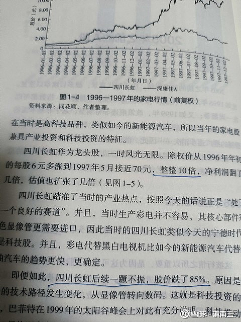 到此书,打开四川长虹的财务看,感触很大,最近三年,四川长虹平均营收1000多亿,但是平均净利润才7亿!相当于1000元的产品,企业最终才有不足10元的利润,这真的是太卷了,作为曾经的大牛股,激烈竞争的薄利生意导致了价值回归,曾经家电巨头,现在已经被美的和格力超越了!$格力电器(SZ000651)$ $美的集团(SZ000333)$ $四川长虹(SH600839)$