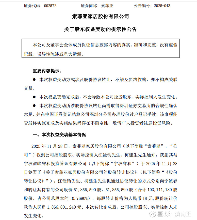 什么是强强联合,这就是强强联合,美的集团大公子,入股顾家成为掌门人后,现在又18亿,入股索菲亚10%,稳住三大股东的地位,不排除以后直接控股索菲亚,这样索菲亚和顾家组合起来,直接可以和欧派竞争,这样模式结合,让美的从家电直接向家具转换,的确有魄力!这个思路,格力也可以借鉴一下!$美的集团(SZ000333)$ $格力电器(SZ000651)$ $索菲亚(SZ002572)$