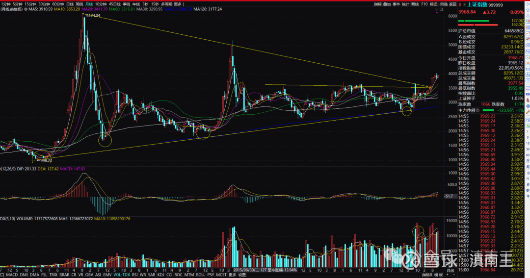 现在的走势,趋势比较明显,主要就是几个关键点,一个就是2700附近是大底部,3700是已经变成一个强支撑,今年突破过去十年高点,未来大的压力点,就是5000点,乃至6000点,甚至更高!