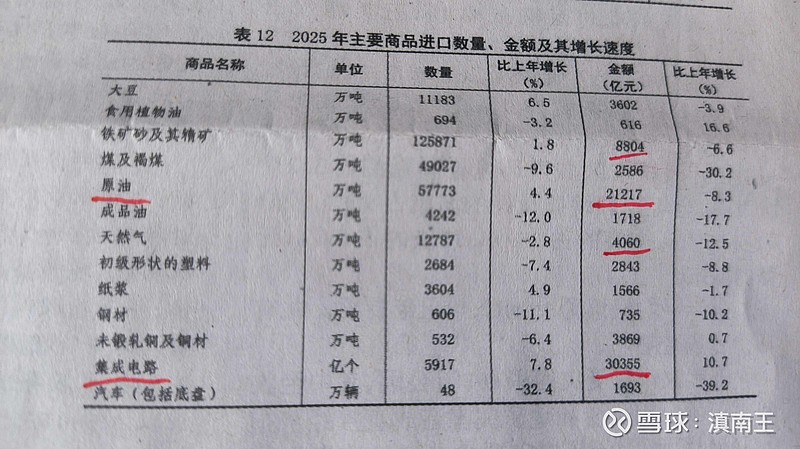 为什么要大力发展科技,从此图看就比较清楚了,2025年,我国进口额最大的竟然是集成电路,进口金额是3万亿,而且远超石油,石油的进口额才2.1万亿!这数据真的是触目惊心,发展科技,依然任重道远!$中国海油(SH600938)$ $苹果(AAPL)$ $英伟达(NVDA)$