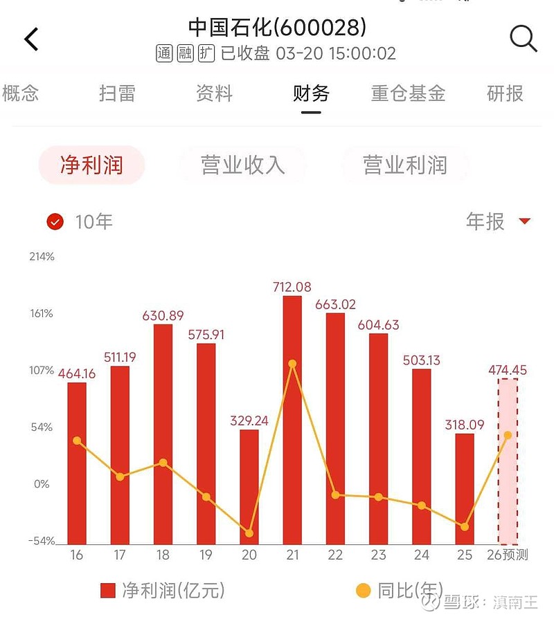 中国石化出2025年业绩了,2025净利润318亿,很多人比较悲观,其实这业绩基本就是最近几年业绩一个低点区域,过去十年,2015年净利润322亿,2020年净利润329亿,2025年净利润318亿,也就是从业绩看,300亿就是行业周期底部,加上现在国际油价大涨,上半年业绩会超预期的,拭目以待!$中国石化(SH600028)$ $中国海油(SH600938)$ $中国石油(SH601857)$