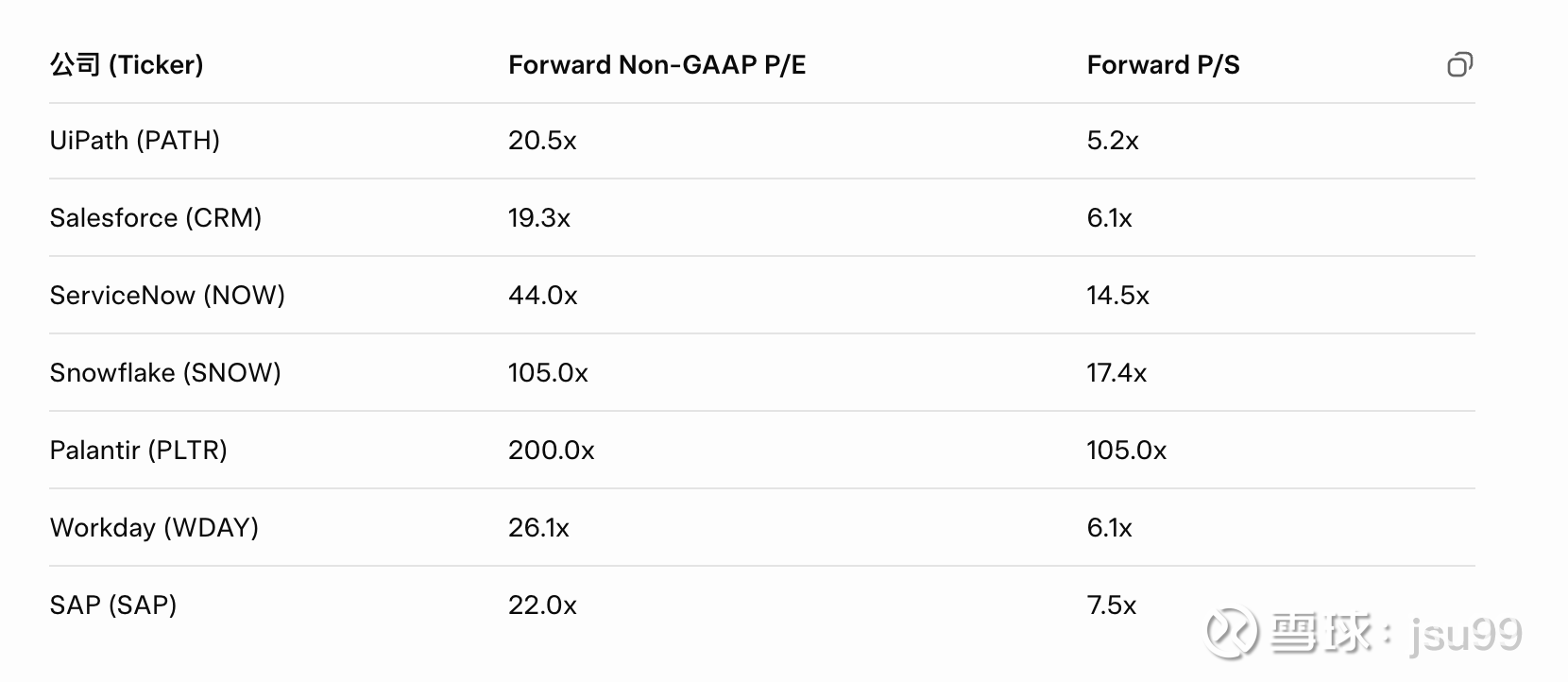 聊估值之前先说说我对公司的看法。CEO技术出身,做事踏实,公司过去8个季度在营收和EPS都是beat,公司的业务是toB的说明营收更稳定。这几点让我主观上对现在投资这家公司非常心安。现在大家常说的AI革命说到底就是要让企业降本增效,实现生产力提升,UiPath作为RPA龙头就恰恰站在了这个风口上。