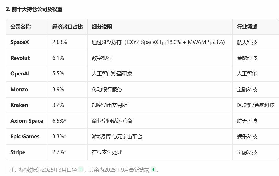 Destiny Tech100(股票代码:DXYZ)是2020年11月成立的一家封闭式管理投资公司,通过二级市场收购后期独角兽股权,构建“Tech100”组合(当前持仓22家),覆盖航天、AI、金融科技等高增长赛道,为普通投资者提供低门槛参与顶级未上市科技公司的通道。