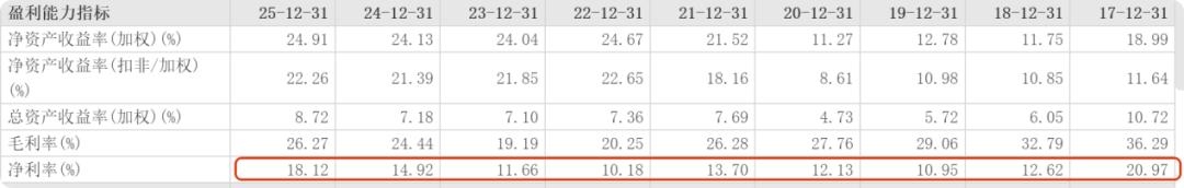 宁德时代净利润的大幅提升和其净利率的大幅提高有直接关系。2025年宁德时代的毛利率26.27%,相比上一年的24.44%提升了1.83个百分点,毛利率为近四年新高,相比2017年的36.29%却大幅下滑超10个百分点。2025年宁德时代18.12%的净利率也创下2017年以来新高,相比2024年的14.92%,大幅提升了3.2个百分点,净利率的提升几乎是毛利率提升的2倍。18.12%的净利率几乎追上2017年20.97%的巅峰。