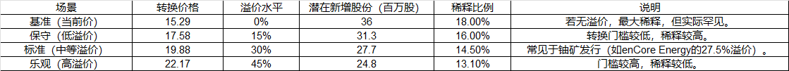 预期用途:净收益将用于支付“capped call transactions”(一种期权对冲工具,用于减少转换时的股权稀释)。提供财务灵活性,包括:资助White Mesa Mill的Phase 2稀土分离电路扩建。资助澳大利亚Donald重矿砂和稀土项目的开发及权益投入。一般企业需求、运营和营运资金。