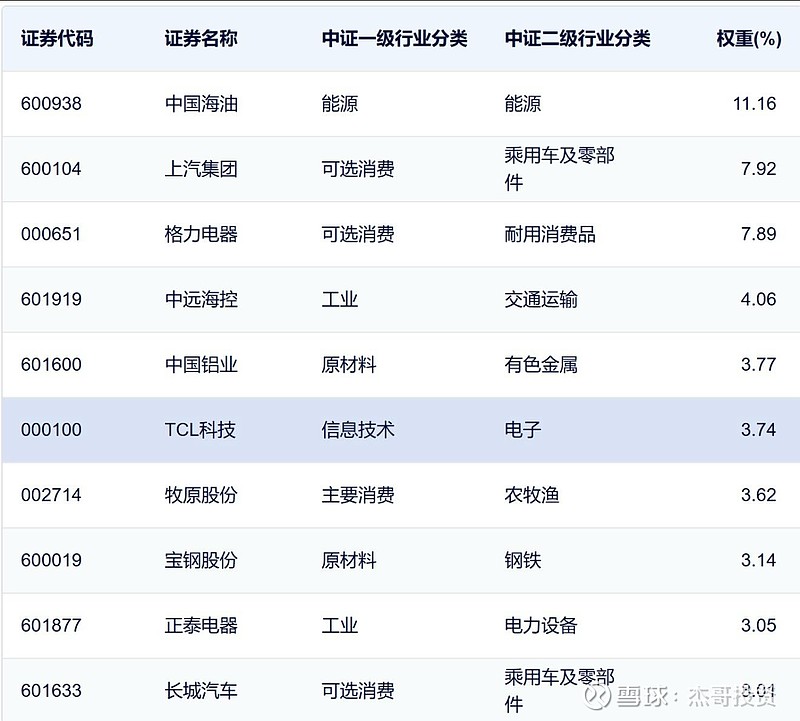 行业还挺分散的,工业、可选、原材料都是20%。然后能源是11%。前十大是50%的持仓。