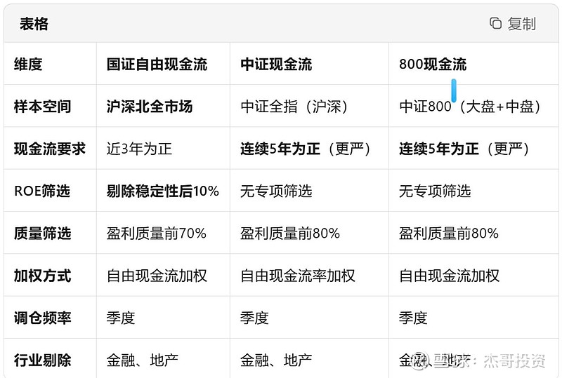 其实这个竞争主要是在国证自由现金流、中证现金流和800现金流之间展开,三者的编制基础基本相当,国证多个北交所,多个ROE, 800限定选股范围为中证800.