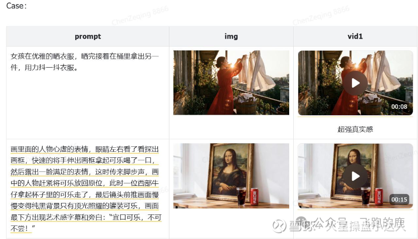 根据官方文档,它现在可以生成真实感极强的画面,比如女孩晒衣服的场景;也能在复杂文字指令下,做出有创意的跟随表现,例如让蒙娜丽莎像在喝可乐。