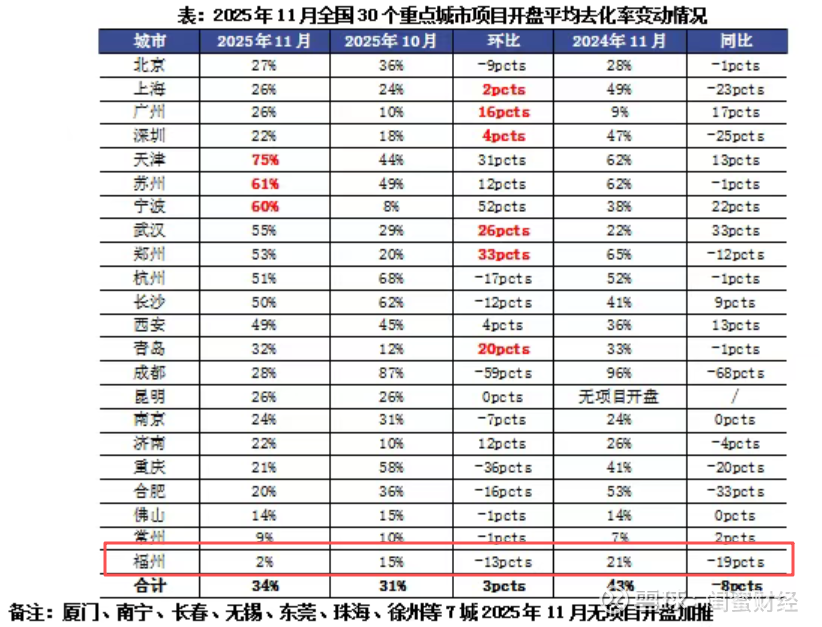建发的基本盘在福建本土市场,但进入11月后,福建市场降温,比如省会城市福州新房去化率环比下降13个百分点,同比下滑19个百分点。厦门则无新盘加推。