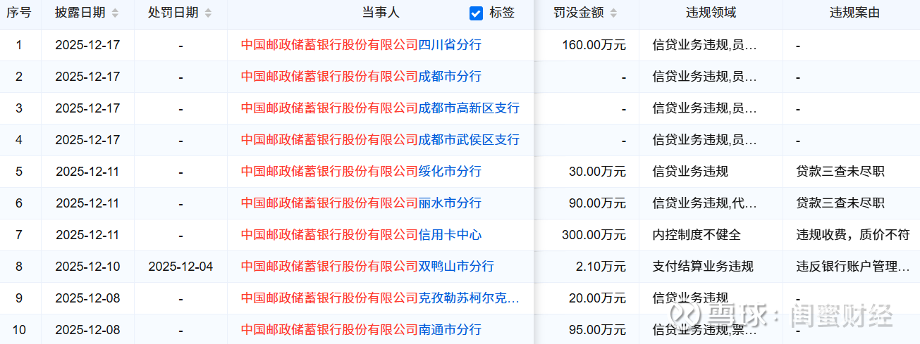将视野拉长至整个2025年,蜜妹发现这些“12月惊雷”只是邮储银行年内合规困局的冰山一角。
