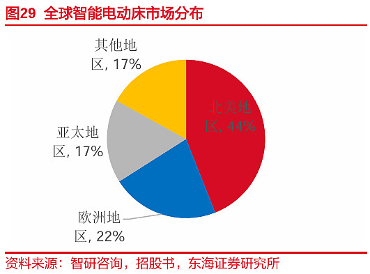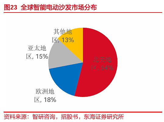 销售端:北美是全球最大的功能沙发和智能床市场,其中功能沙发渗透率近50%,渗透率极高,且消费者习惯于为“舒适性”和“科技体验”支付高溢价。相比国内市场的“内卷”和价格战,美国中高端市场竞争格局相对稳定,头部效应明显。公司坚持大客户战略,通过深度绑定订单量大、信誉好、复购率高的美国顶级家居零售商,为其提供OEM服务,实现规模效应的同时逐步建立品牌。如公司第一大客户Ashley(爱室丽)是2025年北美家具制造商榜首,第二大客户Pride Mobility(普莱德)是全球电动轮椅领域的领军者,美国电动轮椅市占率第一。