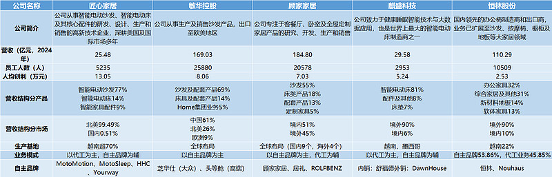 相较于敏华控股等以成品组装和品牌营销见长的企业,匠心家居更像一家“科技型制造企业”,通过垂直一体化策略实现产品从核心零部件到成品制造的全流程自主掌控。这一体系并非简单的代工组装,而是在全球范围内进行了优化布局,深度整合了研发、制造和销售的各个环节,形成高效的协同网络。